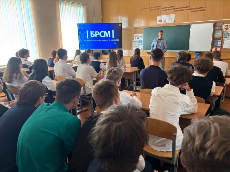 16 сентября в рамках обучающей программы «Я. Моя семья. Моя Родина» в нашей школе состоялась встреча первого секретаря Ленинского районного комитета общественного объединения «Белорусский Республиканский союз молодёжи» Даниила Олеговича Васильева с учащимися 9-х классов. Даниил Олегович рассказал ребятам о направлениях деятельности «БРСМ». Отметил, что что самая массовая молодёжная организация Республики Беларусь, которая объединяет наиболее активных представителей нового поколения. Сказал, что именно им, молодым белорусам, предстоит своими руками строить процветающую Беларусь.