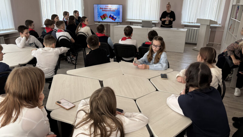 В преддверии Дня единения народов Беларуси и России в нашей школе прошло необычное мероприятие в рамках международного сотрудничества. Учащиеся 5, 8 и 10-х классов приняли участие в онлайн-встрече (телемосте) с ребятами из МУО СОШ «Образовательный комплекс №24 им. А.С. Пушкина».